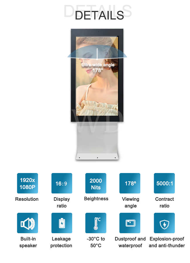 Double sided sceen designed digital signage makes it more impactful and impressive to display advertisement with messaging, graphics, and video in outdoor public promotion places This kiosk widely used in Shopping Malls , roadside, airport ,Theme Parks,Sports Bars etc. Display different unique content on each side of the screen or same content on both as option.